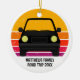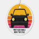 Cool custom road trip Christmas ornament for a spring break or summer vacation souvenir for your family or friends. Personalize with your last name or group above the retro sunset and car silhouette. Perfect souvenir for a trip to a cottage or across the country. Drive off into the sunset.
