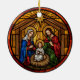 This profoundly beautiful round ceramic ornament features the Nativity Scene—the Holy Family of Mary, Joseph, and the Christ Child—rendered in a rich, warm stained glass style. The scene glows with golden light emanating from the Star of Bethlehem above the stable, highlighting the figures' halos and drapery. With its striking colors and reverent subject, this piece is an ideal religious Christmas gift, a beautiful Baptism keepsake, or a timeless addition to your own holiday traditions, serving as a reminder of the true meaning of Christmas.