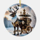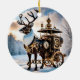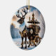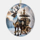 Ce design amusant a un renne steampunk tirant un chariot métallique à roues.