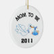 Stork Maman to Be avec une cigogne portant un bébé dans une couverture bleue.