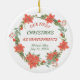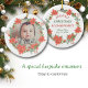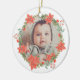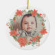La façade de cet ornement de vacances a la photo de votre bébé encadrée d'une poinsettia rouge et verte et d'une couronne de sucre de canne. Le dos de l'ornement a la même couronne avec des champs de texte en rouge et vert correspondant pour votre propre texte personnalisé. Un cadeau parfait pour les grands-parents de 1ère fois, mais vous pouvez facilement changer le texte à tout ce que vous voulez.
