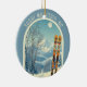 Ornament from a wonderful skiing holiday in the beautiful mountains of Sugar Mountain North Carolina. This Ornament features an arch with a stunning blue-grey mountain landscape and retro ski boards in an orange tribal pattern in the foreground. The rest is in a lovely light blue tone with the location lettering in a modern font. The design is a lovely combination of retro and modern, and I hope you enjoy it!