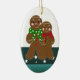 Un design mignon avec deux biscuits pour hommes en pain d'épices avec des visages souriants et un gros arc de fête autour du cou. Une bordure de vert profond avec des étoiles blanches de vacances.