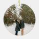 Décor moderne de Noël avec un design typographique contemporain avec "engagé" dans une typographie de script élégante, avec vos noms et date fiançailles dans une mise en page simple et minimale. Le dos a votre photo préférée. Le thème de couleur est rouge et peut être modifié par l'outil d'édition de conception. Ce décor minimaliste est parfait pour un couple pour leur premier fiancé de Noël.