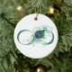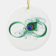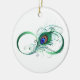Le symbole de l'infinity with a bright, green, artistic peacock feather on a white background. Tattoo style.