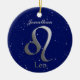 Ornement dans le symbole zodiaque pour Leo dans un dégradé argenté sur un arrière - plan étoilé, avec champ de nom modifiable