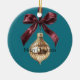 Décoration En Céramique Teal Green Burgundy Bow Gold Ornament Christmas