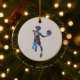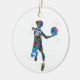 Vibrant watercolor artwork of a teenage basketball player featured on a ceramic ornament. A modern and energetic sports design perfect for decoration or as a gift for young athletes.