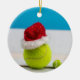 Bal de tennis avec chapeau de Santa pour Noël Ornement en céramique
