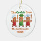 The ornament features a design of three gingerbread chefs, perfect for. adding a festive touch to your Christmas tree. It brings a cozy and whimsical vibe, ideal for those who love holiday baking and decorating. This ornament is perfect for Christmas enthusiasts looking to add unique decorations to their holiday collection.