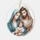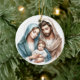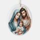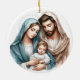 The Holy Family in Blue Robes with Sacred Serenity Silver Plated Banner Ornament
