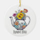 Teapot avec fleurs dedans et dedans avec les mots "bliss brassé".
