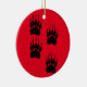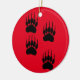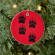 Joli style de dessin animé avec des empreintes de pattes. Décor céramique personnalisé avec arrière - plan rouge. Idée de décoration de Noël.