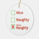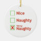 Trois cases à cocher vertes avec les mots Nice, vilains et très vilains en texte rouge à côté de eux, la boîte pour très vilain a été vérifiées avec un "X" Père Noël oh là là ! désolé !