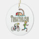Triathlon design shows swimming, running and cycling competitors with the word Triathlon in the middle - for people who like a tough physical challenge.