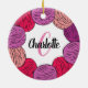 Cadeau personnalisé décoration de Noël avec design de boule de laine en rose, violet et blanc. Un joli Noël rond qui fait un cadeau idéal ou remplissage de Noël pour un tricoteur. La conception comprend l'espace pour le nom du destinataire et l'initiale présentée peut également être personnalisée.