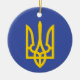 Christmas ornament featuring the Ukrainian tryzub on one side and веселих свят! (Happy Holidays) on the other side