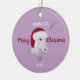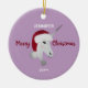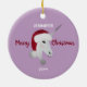Christmas Unicorn Purple Imaginaire Kids Personnalisé Ceramic Ornament fait un cadeau élégant pour un amoureux de la licorne! La belle licorne blanche porte un chapeau de Père Noël rouge et le nom et l'année customisés. L'accueil de vacances de texte est "Joyeux Noël" dans le script de calligraphie moderne lettering. L'Arrière - plan montré est pastel violet et vous pouvez changer à n'importe quelle couleur. REMPLISSEZ SIMPLEMENT LE NOM SUR LE MODÈLE ZAZZLE MONTRÉ POUR VOIR VOTRE PROPRE ORNEMENT PERSONNALISÉ