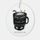 L'ornement de Noël des Fêtes avec les mots "Voeux les plus Chauds" sur une tasse de cacao chaud à la cannelle et un sucre de canne. Personnalisez le texte personnalisé ci-dessus. Vous pouvez également modifier la couleur arrière - plan. Vous pouvez trouver d'autres éléments de coordination dans notre collection "A Modern Illustrated Holiday".