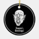 Ajoutez une touche d'horreur à vos fêtes avec ce ornement de Noël rond avec un dessin effréné d'un vampire qui se balance les crocs contre un audacieux arrière - plan noir. La conception étrange est complétée par les mots "Salutations de saison" pour une tournure éffrayante sur un message de vacances classique. Parfait pour les amateurs de toutes choses goth et Dracula, cet ornement apporte une ambiance sombre et mystérieuse à votre arbre. Un cadeau de Noël unique et mémorable pour la bonne personne, c’est un cadeau idéal pour ceux qui aiment célébrer la saison avec une touche de éffrayant et de surnaturel!