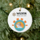N'oubliez pas votre voyage de croisière avec ce ornement de Noël qui comprend un bateau de croisière, l'océan, les palmiers, la roue du capitaine, et le soleil. Le nom de famille et la courte phrase ou la date sont personnalisables. Faites un grand moment de voyage personnalisé ou gardez-vous!
