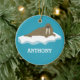 Créez un cadeau personnalisé cool pour quelqu'un qui aime les morses. Cet ornement de Noël a une illustration d'un morse flottant sur un morceau de glace ou un iceberg. L'illustration de style réaliste du morse est en marron contre un arrière - plan bleu turquoise. Il est prêt à être personnalisé avec un nom ou un autre texte sous le graphique en lettres blanches. Il y a un point à l'envers pour ajouter un message supplémentaire.