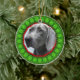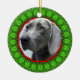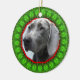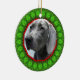 Un beau Weimaraner orné dans une guirlande rouge et verte lumineuse de Noël.