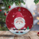 Whimsical Santa Claus Christmas Berry Red Ceramic Ornament with personalizable name on his hat. Father Xmas winter wonderland scene. Unique St Nick cartoon design. Snowy holiday character graphic illustration.