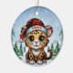 Wild Feline Lovers Woodland Wildlife Kitten ceramic ornament featuring a fun blend of leopard spots with this cute Xmas cartoon graphic with personalizable santa hats. Customize by changing the name. Perfect customizable gift for any kitty cat enthusiast or animal print fan. Two sided design ensures your tree always looks festive & complete. Add a unique touch & holiday spirit cheer to your décor with this custom one-of-a-kind, purr-fect Christmas season keepsake! 🐆🐈🐾