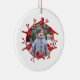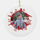 Une couronne festive d'oiseaux et de hanches roses entoure votre propre photo dans cette jolie décoration de Noël rouge et blanc de style scandinave. Art original de Nic Squirrell. Crédit photo : Photographie © Storytree Studios, Stanford, CA