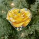Beautiful memorial ornament with faux stained glass yellow rose with sky blue background. Customize the back with custom greeting, name and dates.