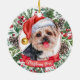 This sophisticated ceramic Christmas ornament features a watercolor of a sweet Yorkshire Terrier Dog with his tongue out in a Santa hat, surrounded by holiday greenery, pinecones and berries, with a red banner with your pet's name (or change to Merry Christmas). You can fully personalize this design by changing the greeting and year on the back in an elegant font. This is a stylish, yet inexpensive, custom Christmas ornament, and it's perfect for Yorkie lovers, dog lovers, or pet lovers.