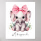Ajoutez une touche spéciale à votre nursery avec cette adorable décoration murale éléphant bébé comportant une douce impression de nom ! Cette charmante illustration à l'aquarelle présente un éléphant mignon avec un nœud à pois rose, parfait pour la chambre d'une petite fille. Idéal pour les nurseries sur le thème de la jungle ou du safari, cette impression est également un beau souvenir pour les nouveaux parents ou une décoration attentionnée pour une fête de bébé. Ajoutez le nom du bébé pour un cadeau vraiment significatif.