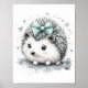 Hérisson mignon en noir et blanc avec une touche de couleur vert menthe sur le ruban.