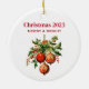 Un ornement avec une illustration de style vintage. 3 boules de Noël rouges entourées de saints verts et de baies. Design rétro élégant.