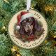 Célébrez le premier Noël spécial de votre chien avec cette adorable carte personnalisée Dachshund Christmas Paper Ornament Card qui présente une belle illustration de style vintage d'un dachshund portant un chapeau de Père Noël. Entouré d'une verdure festive, de baies et de pinécones, cet ornement gardien est l'ajout parfait à votre arbre de vacances ou un cadeau sincère pour tout amoureux des chiens. Customisez-le avec le nom de votre animal de compagnie pour créer une mémoire de vacances unique qui sera chère pour les années à venir.