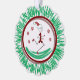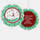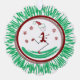 Papier Ornament Card - Stick Figure Runner Guy prêt pour les fêtes avec son chapeau de Père Noël rouge et chaud! Des flocons de neige flottent près de lui pendant qu'il passe avec des Chaussures et des Gants rouges.