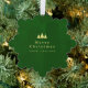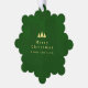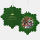 Joyeuse carte de décoration en papier de Noël avec le paysage urbain de Chicago Illinois. Design moderne dans les tons vert et or. Ajoutez la photo désirée à l'arrière (ou gardez ce qui est montré). Espace unique et amusant pour votre salutation personnelle. Utilisez le modèle pour créer votre propre carte photo de décoration en papier Joyeux Noël vert.