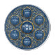 Cette plaque de Seder de Pâque peut servir de planche à découper, de plateau d'affichage ou de porte-bougie pendant la semaine de Pâque. La verrière est présentée dans la collection Bleue de la Pâque Baroque, qui comprend des produits assortis, tels qu'un coureur de table, des couvertures matzas, des serviettes, serviette de lavage netilat yadayim, des tasses, des coussins inclinables, et plus encore.