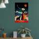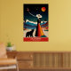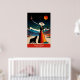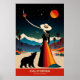 Découvrez l'attrait de "California : The Land of Dreams" avec ce poster de voyage époustouflant!, Dans cette scène enchanteresse, une femme en robe vibrante et un casquette à large bord d'un ours, les deux regardant un ciel nocturne époustouflant orné de planètes et d'étoiles. La toile de fond est composée de majestueuses montagnes enneigées et de palmiers balancés, qui incarnent parfaitement la beauté variée de la Californie. Au-dessus de ce tableau fantaisiste, l'expression "California : The Land of Dreams" saisit la magie et l'aventure qui attendent dans l'État d'or.