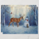 Une scène amusante d'un cerf qui mange le nez de la carotte d'un bonhomme de neige et d'un lapin lapin qui supplie pour un morceau.