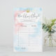 Nouveau jeu très moderne "Guess Age of Mom and Dad in Photos". Rends ton baby shower vraiment mémorable. Cette carte de jeu de baby shower dispose d'une police moderne script sur arrière - plan d'aquarelle rose et bleu, parfait pour une soirée révélateur de genre!
