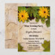 Invitation à la fête d'anniversaire avec un thème de vin avec des raisins suspendus et des feuilles sur un mur arrière - plan rustique avec des fleurs jaunes joyeuses. Personnalisable pour une dégustation de vin ou une fête d'anniversaire ou les deux.