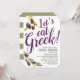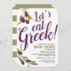 Célébrez votre douche nuptiale et votre futur mariage en lançant une dégustation de nourriture de style grec. Permettre à chacun de socialiser tout en dégustant les meilleurs et les plus populaires plats de la cuisine grecque. Cette invitation présente des branches d'olivier encadrant le côté avec les mots "mangeons du grec" vers le centre. Tous les éléments de l'invitation sont déverrouillés et personnalisables Incluant la phrase Sage "mangeons du grec". Utilisez simplement la fonction customisée pour accéder à ces fonctionnalités. Amusez-vous à concevoir et à fabriquer votre propre produit.