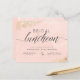 Le design parfait pour un déjeuner nuptial classe ! Cette invitation budgétaire présente un arrière - plan d'aquarelle rose vif avec des arrosages de poussière chic de feuille d'or faux sur les coins. "Luncheon" apparaît dans une police de caractères stylisée tandis que vos détails sont présentés dans une typographie sans serif épurée et minimaliste avec une fine feuille verte placée entre les deux. Dans le cadre de la sélection du budget ici sur Zazzle, ces invitations ne sont pas fournies avec des enveloppes et ne s'insèrent pas dans une enveloppe de taille standard. La taille la plus proche est A6 mais il y aura un écart d'environ un demi-pouce. Si vous n'avez pas peur du manque de douceur, vous pourriez utiliser des enveloppes A6 aussi largement disponibles. Sinon, cette conception peut être transférée dans un format standard 5x7 (avec enveloppes) à l'aide de l'outil de transfert de conception. À titre d'exemple, au moment de la rédaction du présent document, 100 invitations budgétaires (y compris une remise sur le volume) coûteraient environ 39 $, alors que 100 invitations standards 5x7, y compris des enveloppes, coûteraient environ 135 $. Votre kilométrage peut varier en fonction des codes promo disponibles de Zazzle, des ventes à l'échelle du site ou des changements de prix.