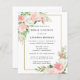 Des roses roses roses et des fleurs d'hydrangée blanches et vives sont nichées dans des feuilles verts et doux pour créer d'élégants arrangements floraux qui décorent un cadre doré brillant qui entoure vos détails du déjeuner nuptial. Cet article fait partie de la collection de Fêtes des mariées florales rose et blanc.