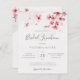 Une élégante invitation à déjeuner floral moderne avec des fleurs de cerisier rose vif et de la calligraphie moderne sur une texture de papier fait à la main.