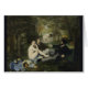 Déjeuner sur l'herbe (Le Déjeuner sur l'Herbe) d'Edouard Manet, huile sur toile 1863, est un tableau paysager de quatre personnes prenant un pique-nique dans un vitrage de forêt entouré d'arbres sombres et de feuillage. Les historiens de l'art citent souvent la peinture comme le point de départ de l'art moderne pour ses formes aplaties, sa technique de peinture et son objet moderne "choquant", et le tableau a suscité une grande controverse sur sa première exposition. Pour les sujets féminins, Manet a employé son célèbre modèle Victorine Meurent et sa femme Suzanne, en les comparant avec leurs compagnons masculins. La composition a été transposée à partir d'une gravure Renaissance de Marcantonio Raisella, conçue par Raphael, qui a alimenté la notoriété du tableau. Les contrastes frappants de la lumière et de l'obscurité, la technique de peinture douteuse, et la matière de réalisme de la composition aplatie marque Luncheon on on the Grass comme l'un des tableaux les plus importants du 19ème siècle, influençant de nombreuses générations subséquentes d'artistes modernes. Edouard Manet (1832 - 1883) est un peintre réaliste français et l'un des fondateurs du mouvement impressionniste français dont les peintures controversées ont marqué la fondation de l'art moderne. En poursuivant l'art à un jeune âge, Manet a étudié pendant 6 ans sous le peintre universitaire Thomas Couture, et lors de voyages à l'étranger a rencontré les maîtres néerlandais ainsi que les peintres espagnols Velquez et Goya .. Ouvrant son propre studio à Paris, Manet a réalisé de nombreux tableaux sous l'influence du réalisme du Courbet, peignant des scènes de la vie moderne. Ses chefs-d'oeuvre Luncheon on the Grass and Olympia de 1863 suscitent une grande controverse, et bien que l'artiste continue d'exposer dans le Salon officiel de Paris, il a été ami Degas, Monet, Renoir, et d'autres peintres impressionnistes clés. Peinture à la manière lâche et esquissée de coups de pinceau et de formes aplaties que certains ont trouvées inachevées, Manet a produit de nombreuses scènes de vie nocturne de cafés bohèmes, des scènes journalistiques de guerres et d'événements actuels, ainsi que des sujets des rues de Paris avec une telle spontanéité et une telle innovation de composition qu'ils ont exercé une influence durable sur les jeunes générations d'artistes et l'a consacré comme le vrai "peinquépeintre de la vie moderne ". Bien que l'artiste soit mort jeune, Manet a créé des peintures qui ont été le point de départ et de ralliement de l'école d'impressionnisme et les fondateurs de la peinture moderne.
