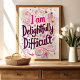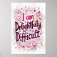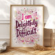 Adoptez votre personnalité unique avec cette impression d'art fantaisiste "Je suis Délicieusement Difficile". Caractérisée par une police manuscrite ludique et des accents floraux délicats, cette pièce célèbre ceux qui osent être différents. Parfaite pour ajouter une touche de charme impertinent à votre chambre, bureau ou partout où vous avez besoin d'un rappel de votre complexité fabuleuse.