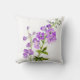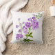 Art floral violet, vert et blanc coussin. Empreinte de Delphinium colorée d'une oeuvre originale en aquarelle et gouache de Sarah Trett. Impression dynamique pour apporter une touche de couleur estivale à un salon ou une chambre.